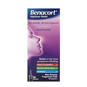 Benacort Hayfever Relief Nasal Spray 60 is used to treat adults with inflammation in the nose caused by an allergy to pollen (hayfever). Symptoms may include sneezing and/or runny, itchy or blocked nose.
